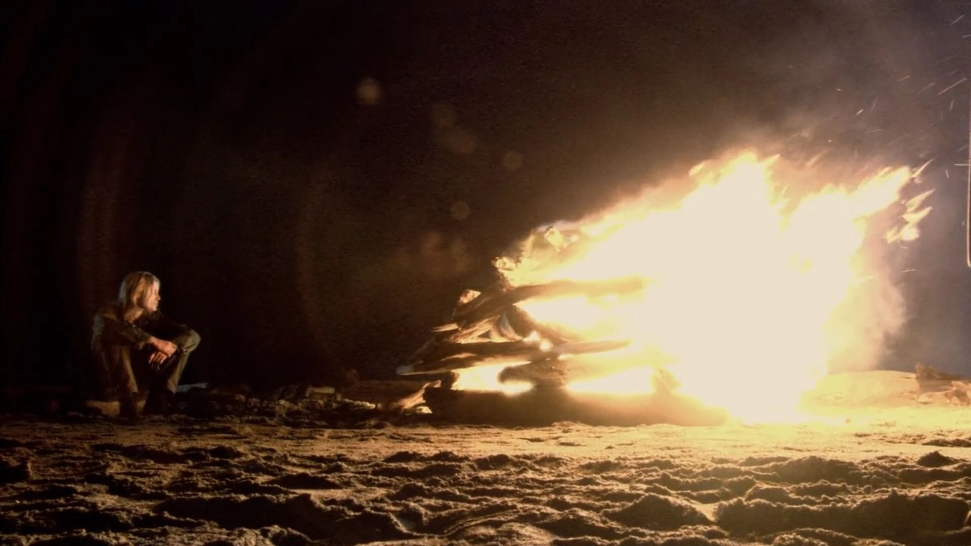As dusk falls, Starbuck builds a funeral pyre for the corpse and burns it.